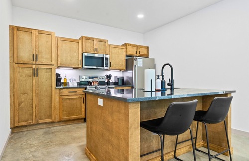 - Fully equipped kitchen with modern appliances and spacious island