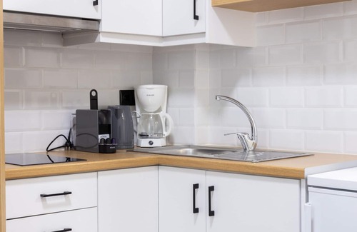 On the living room you will find a relax sofa and a flat TV. A fully equipped kitchen with everything you need. You will enjoy having your complimentary coffee during your stay.