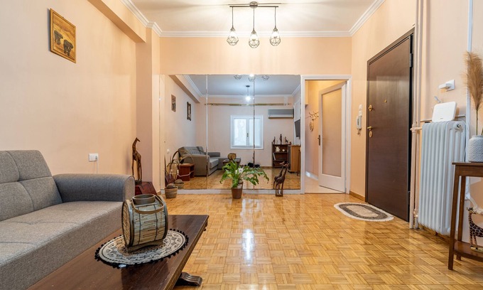 Welcome to our newly renovated apartment in the center of Athens, where modern elegance meets the captivating spirit of Africa. The location is approximately 7 minutes from Metro station (Panormou) and 3 minutes walking distance from bus station of X95 Bus ( direct access to Eleutherios Venizelos Airport ). It is located next to Kifisias Avenue making transport swift and easy. The place consists of one double bedroom and a sofa-bed in the living room.