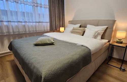 Perfectly located, just a 15-minute walk from the exhibition center and city center. The apartment offers all the comforts for a heavenly stay. Enjoy fresh bread rolls from the bakery on the ground floor. Exclusive use of the apartment. Key handover by arrangement or via app.