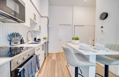 The modern and comfy getaway will leave you in awe with its carefully picked amenity list spread over a nice spacious condo. Stylish wooden floors extend throughout the entire apartment. The living area combines the living and the dining room with the kitchen, creating a contemporary open concept design space.