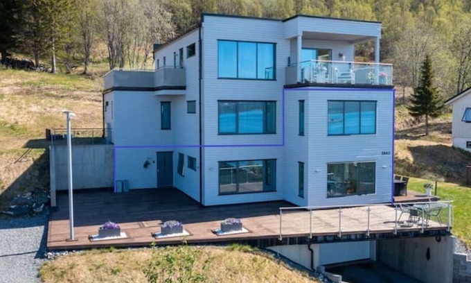 Modern and spacious apartment with stunning views over majestic mountains and the entrance to Tromsø. Enjoy your stay in quiet surroundings close to mountains, forest, sea and city at the same time. Here you can experience the midnight sun on the terrace in the summer and the NorthernLights in the winter.