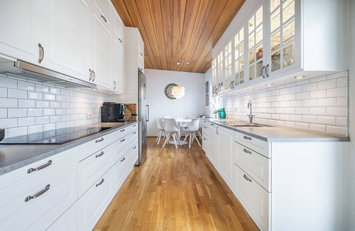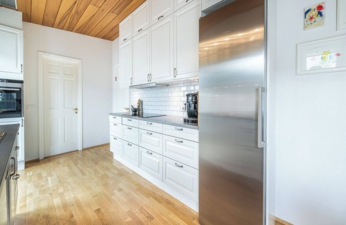 Our house is on two floors. Main floor has master bedroom with King size bed (180x200cm), another room with desk, Spcious living room. Our kithen is fully loaded with everything you need. Downstairs we have three bedrooms, one with two single beds (90x200cm and the other two with Queen size beds (160x200cm) and the third one with King.
