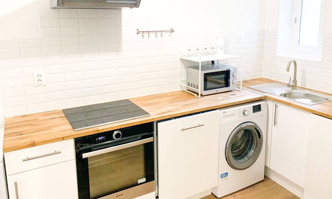 A living room and a desk are featured at this 1-bedroom, 1-bathroom rental. Bathroom amenities include a hair dryer, towels, and toilet paper. Prepare a home-cooked meal in the kitchen, complete with an oven, a stovetop, and a refrigerator, as well as a microwave and cookware. And you can even travel light because you'll have a washing machine. Other amenities include an ironing board, heating, and a desk chair.