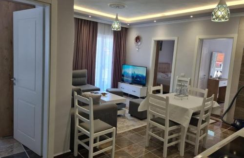 Modern apartment Fishta Q5 22 offers accommodations in Velipojë, 20 miles from Lake Skadar. The air-conditioned accommodation is 19 miles from Rozafa Castle Shkodra. Free Wifi is available throughout the property and Velipoja Beach is a 1-minute walk away. Offering a balcony and sea views, the spacious apartment includes 3 bedrooms, a living room, flat-screen TV, an equipped kitchen, and 1 bathroom with a bidet and a shower. Towels and bed linen are featured in the apartment. The property has an outdoor dining area. Tirana International Mother Teresa Airport is 52 miles away.