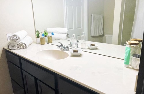 We offer spacious bathtubs ,unique dining table, comfy couch, VR game room, breath taking views from each room quiet and safe neighborhood, with more luxury amenities to take advantage of ask about our packages !