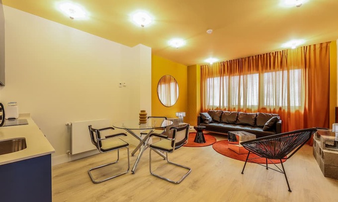 The space has a living-dining room area, decorated with designer furniture, with a comfortable and spacious sofa and the best qualities, it has a Smart TV, high-speed Internet and a round dining table.