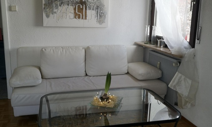 Beautiful modern furnished 3 room apartment with 55 sqm in a 2 - family house. Covered balcony, bathroom, kitchen with dishwasher and ceramic hob, microwave / grill fully equipped with crockery, cutlery and kitchen utensils, coffee maker / espresso machine, electric kettle, fridge / freezer, sofa with sleeping function 140 x 200 linens