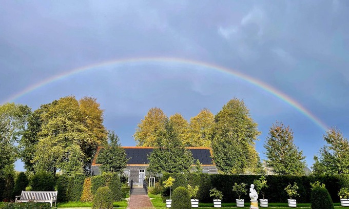 The Apple Barn Residence is a luxurious loft situated on the first floor of the newly renovated Apple Barn in the historic estate "Buitenplaats Huis te Jaarsveld." Overlooking the scenic Lek River, an idyllic moat, and meadows teeming with waterfowl, sheep, and alpacas, it provides a perfect balance of modern luxury and authentic charm.