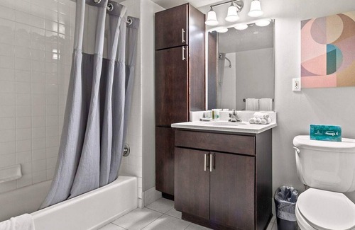 Based on the information received from our partner, the Modern Apt Near Downtown is wheelchair accessible. Likewise, there is an elevator specified as being available at the property. Specific accessibility details may be addressed in the property details section of this page.