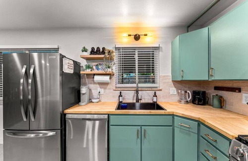Cook anything from a quick breakfast to a hearty dinner in the fully equipped kitchen, featuring modern appliances and sleek countertops. It has everything you need to prepare your favorite meals.