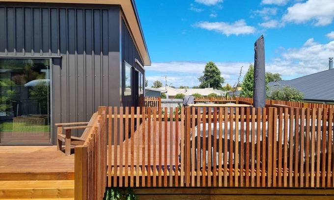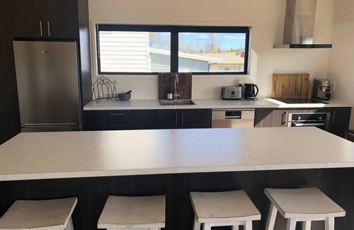 Relax in a modern three bedroom bach in the lakeside settlement of Kinloch. Bach equipped with an open plan kitchen/lounge with a large deck including outdoor dining table and lounge setting perfect for family recreation or entertainment in the evenings. Modern kitchen with all the modcons, heat pump, Full HD Smart TV, unlimited fibre wifi internet, and a bar fridge to keep the drinks chilled. The lawn is fully fenced for a bit of privacy. A great place to relax and enjoy your holiday.