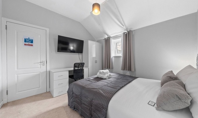 Welcome to our Bannockburn Guest House, where each of the 5 thoughtfully furnished double bedrooms includes a private en-suite bathroom—ideal for couples, solo travellers, or professionals seeking a comfortable and quiet stay. Each room accommodates up to 2 guests. Room 1 features a bathtub for added comfort, while Rooms 2 to 5 offer sleek walk-in showers.Your room and bathroom are fully private, while shared access is available to a well-equipped kitchen, inviting living room, and dining area. These shared spaces allow you to cook, relax, or connect with other guests.Room 1 is on the ground floor, and Rooms 2 to 5 are located on the first floor. The upper levels of the property are only accessible by stairs.Self-check-in only: Entry is easy and secure with a key safe located at the property.Free on-street public parking is available just outside. Spaces are not reserved and are offered on a first-come, first-served basis.The property is perfectly placed for discovering some of Scotland’s most popular sights. Just a short drive away, explore the famous Battle of Bannockburn Visitor Centre, Stirling Castle, and the Wallace Monument. Families will love a trip to Blair Drummond Safari Park for a day of fun and adventure. Nature lovers can visit Loch Lomond & The Trossachs, while cities like Falkirk, Edinburgh, and Glasgow are ideal for exciting day trips.Please note: A security deposit registration is required before arrival to receive check-in codes. No money is charged, just a pre-authorisation of 1 euro.