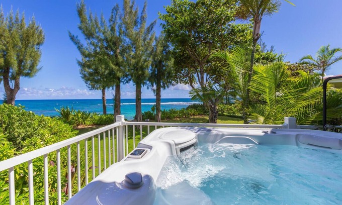 Modern Beachfront Estate near Tunnels, Sleeps 12 | House in Hanalei