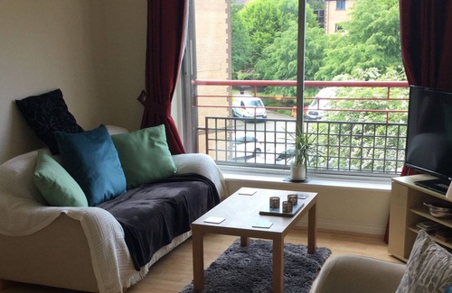 2nd floor large modern waterfront apartment near to River Clyde. Very close proximity to city centre of Glasgow. A Short 10 minute walk with private parking on request prior to booking and also has private communal maintained gardens.