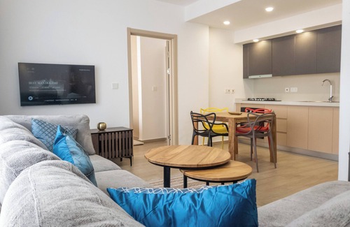 Amenities include a kitchen, 50'' TV with IPTV, WIFI and a washing machine. The apartment can sleep up to 5.