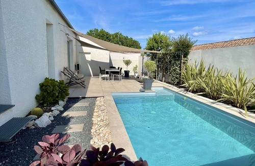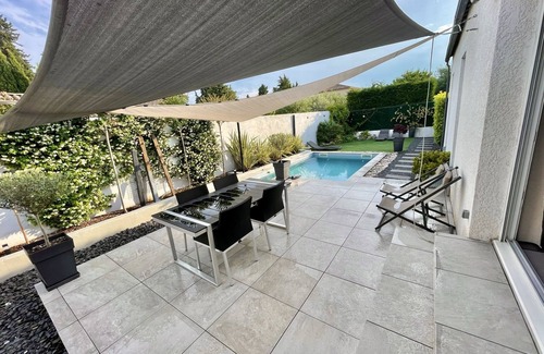 Modern comfort house, tastefully decorated, in a superb picturesque village surrounded by vineyards, at the foot of Pic saint Loup and the Hortus Valley ...