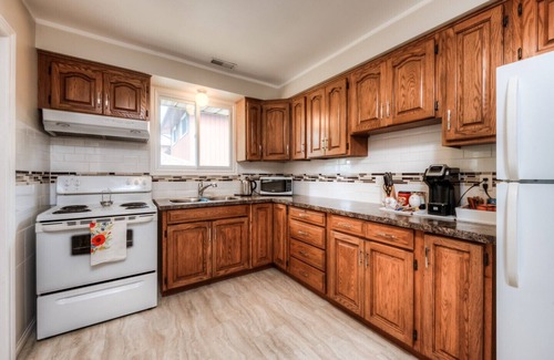 This private main floor apartment (in the single house) with separate and private entrance, 2 Bedroom, Living Room-Dining Room and Full Bathroom has everything you need for a comfortable stay. Cozy, spacious, inviting, recently renovated with easy access to all amenities, it is truly wonderful accommodation (approx. 1200 Sq. Ft.). You’ll feel perfectly at home in this beautiful suite which offers accommodation for up to 5 guests. 1 queen bed, 1 double bed and 1 sofa bed, clean linens, duvets, pillows, fresh towels, a fully stocked kitchen and bathroom are all provided. There are laundry facilities on site for your convenience. Business or pleasure, you’ll love it.