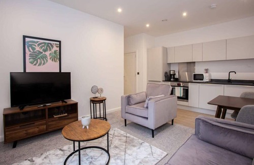 This lovely 1 bedroom apartment in Bolton features stylish furnishings and modern appliances throughout, and is perfect for couples or single travellers. There's an open plan living space with TV and Wifi throughout, plus a fully equipped kitchen and modern bathroom. It's centrally located, just 5 minutes walk from shops, restaurants and bars and has great transport links.