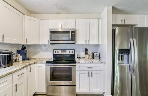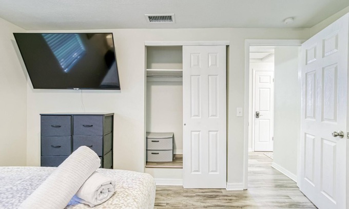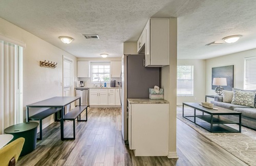This beautiful, renovated home includes amenities such as: Smart TVs, fully equipped kitchen, and High Speed Internet. Your host has paid attention to every detail of this home to create a great guest experience. Your group will find ample space for dining. The fully equipped kitchen includes, coffee maker, microwave, toaster, silverware, utensils and everything you’ll need to cook and prepare meals for your friends and family. The Master bedroom includes a queen-sized bed, desk and Smart TV. In the second bedroom you will find a queen-sized bed and Smart TV. In the third bedroom is two sets of bunk beds. You will find plenty of space for storage in the closet. Your group can relax, cook dinner and then dine in the privacy of this beautiful home.