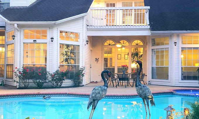 Nestled in a quiet, upscale neighborhood, this spacious custom home is perfect for families or small groups seeking comfort, relaxation, and privacy. Surrounded by mature trees and visited regularly by local wildlife like birds and squirrels, the property offers a serene atmosphere and a beautiful backyard oasis with a pool—perfect for unwinding after a busy day.