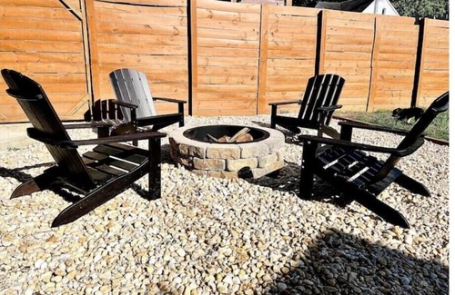 Guests are also welcome to enjoy the outdoor space, equipped with a charcoal grill, fire pit and four outdoor chairs