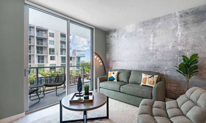 Entire luxury condo at Quadro in the Miami Design District. Fully furnished & equipped - Free parking, coffee, Wi-Fi & cable. The building features resort-style amenities in the 6th floor including a fitness center with a yoga/spinning studio, a lounge with co-working/conference areas & a game room, an outdoor dining area with a summer kitchen & BBQ's, a pool with cabanas overlooking Biscayne Bay. 10-min drive to Miami’s airport, 15-min drive to Miami Beach. Walk to Wynwood and Midtown.