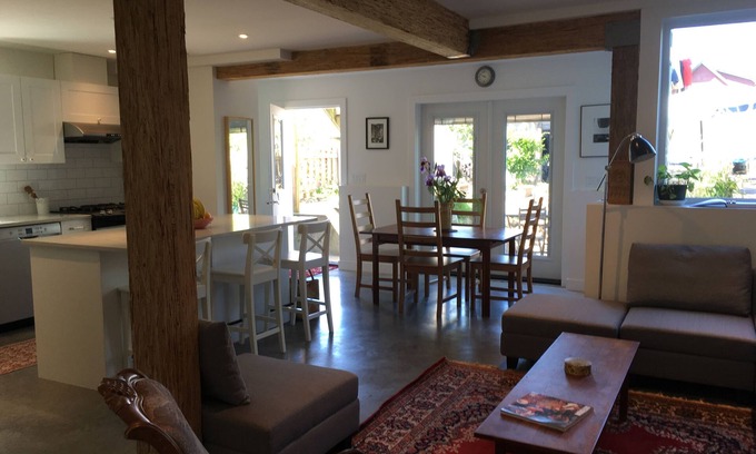 There is an outside seating area with table and chairs. This suite is located in the East Village area, a residential area with lots of grocery stores, restaurants and coffee shops, craft breweries, italian delis. Just two blocks from an elementary school and close to the Pacific Coliseum, the race track, New Brighton Park beach and pool. Just a couple of blocks to public transportation with easy bus rides to Downtown Vancouver only 15-30 minutes away. By car or bicycle downtown is 10-20 minutes away. Also close to the highway creating easy access to the North Shore mountains as well as communities further east.