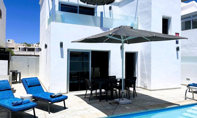 Modern detached villa with private heated pool in the heart of Puerto Del Carmen is located in Puerto del Carmen. Modern detached villa with private heated pool in the heart of Puerto Del Carmen provides accommodation, featuring Ocean View, Bedding/Linens, Wellness Facilities, among other amenities. This Villa features Ocean View, Bedding/Linens, Wellness Facilities, to make your stay a comfortable one.
