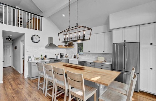 With two spacious master bedrooms and private bathrooms (one upstairs and one downstairs) our home is perfect for two families vacationing together. The downstairs has two additional bedrooms ideal for kids or grandparents, and a large living space that has plenty of seating for everyone. The upstairs loft area has a day bed, making it a great place to take an afternoon nap, read, or get some work done thanks to our reliable wifi. Plus, the basement space is another great place to hang out, play games, or watch tv. It also comes equipped with a washer and dryer for truly convenient vacationing.