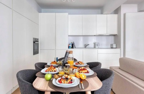 Premium amenities are a hallmark of this apartment, including free WiFi, cable TV, hotel-quality beds and linens, luxury toiletries, and a Nespresso machine. This apartment is truly a city vacation haven, providing all the comforts of home with the added touch of luxury.