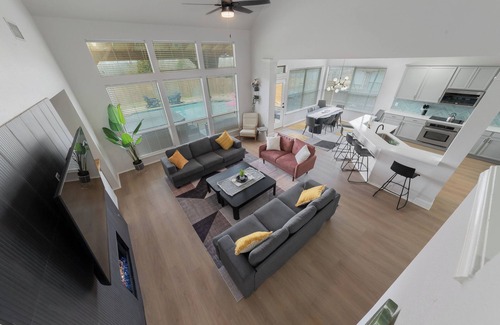 Relax, recharge, and reconnect at this spacious, stylish retreat in the heart of DFW. Located just **10 minutes from AT\&T Stadium, Globe Life Field, and Six Flags**, this home is ideal for large groups, families, or game-day crews. With a **private pool**, **game room**, and sleeping space for up to 12, this pet-friendly stay offers the perfect mix of fun, comfort, and convenience.