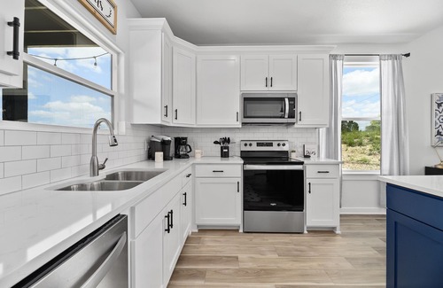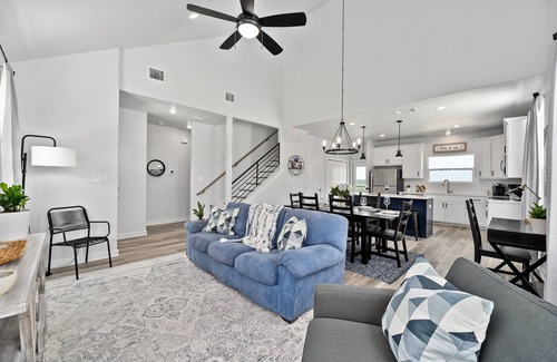 This newly built house is waiting for you with flat screen HDTV's in the living room and primary, new memory foam beds in all three bedrooms, a large living / kitchen / dining open floor plan, and free WIFI.
