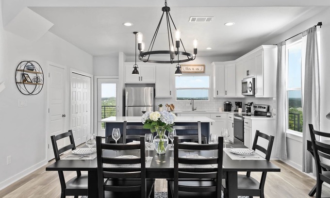 - Large living / dining / kitchen open floor plan with plenty of seating, including a comfy couch, chairs, dining for 6, and 4 bar stools. A 50" HD Smart TV hangs in the living room. The kitchen is equipped with all the essential cookware and bakeware and some basic spices. A voice controlled speaker allows you to stream your favorite music and control several features within the home.