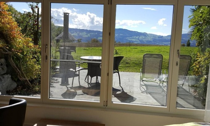 We offer you a well-kept, modern and spacious 1.5-room granny flat above Feldbach with a separate entrance. The cosy seating area has a table with 2 chairs, 2 deckchairs and a barbecue. The electric sun blinds provide shade. The wonderful view of the mountain range on the left bank of Lake Zurich and the greenery (as long as the view is not restricted by a cornfield) invites you to dream and is the ideal place to unwind and relax. You will find a very spacious living and sleeping area. The large sofa area provides enough space to read a book in comfort or relax and watch TV. A double bed (160cm) ensures comfortable nights.