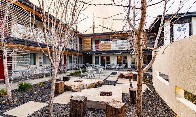 Located in the Linen District of downtown Boise, the Modern Hotel features a modern bar. The Modern Hotel hosts their own independent film festival on all guest TVs. The open air terrace includes stone fire pits and iPod docking stations are in every room. Each stylish room at the Modern Hotel provides a flat-screen HDTV with cable and HBO and free WiFi. Select studios boast a mini-bar and Japanese soaking tub. Glass enclosed showers with deluxe bath products are available in every room. The onsite restaurant offers local cuisine and an evolving menu. Qwest Arena, a multi-purpose arena and home to the Idaho Steelheads ice hockey team, is an 8 minutes’ walk away. Bogus Basic Ski and Boise North End are nearby. The Modern Hotel is 1.5 mi from Boise State University.