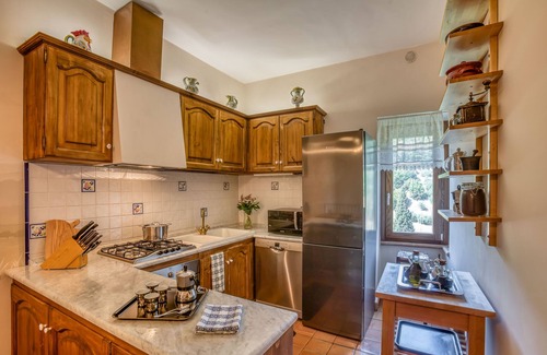 At Rocca di Benano, up to 10 friends or family members can relax in the comfort of high-end furnishings and bedding, screened windows, and air conditioning. Guests also enjoy free internet, a clothes washer and dryer, landline calls to North America, and a sparkling, brand new kitchen (it's still so new we don't even have the photos up yet!) already stocked with the basics.