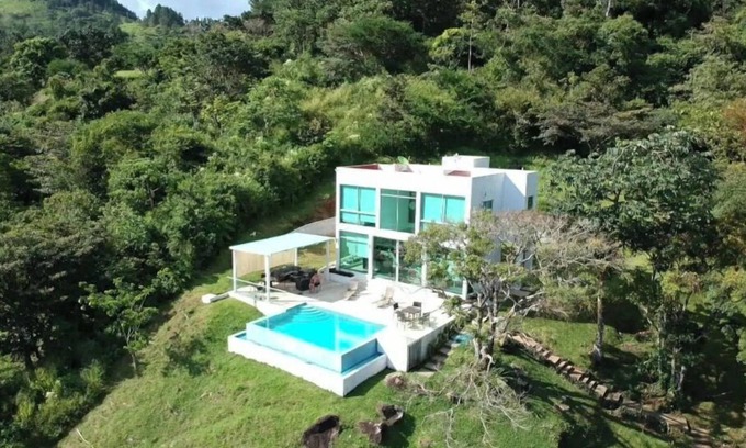 Modern mountain house in Altos del Maria, Panama, a gated comunity at just 1 hour and 30 minutes away from Panama city. The comunity has rivers, bird watching trails, and is only 25 minutes away from the pacific beaches. It´s a perfect place to take a break and relax. The house has a modern decor, infinity heated pool, 2 bedrooms with A/C, wifi, dishwashing machine, washer and dryer and great view of the mountains.