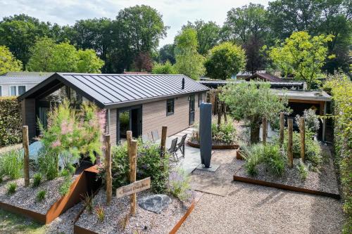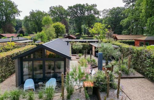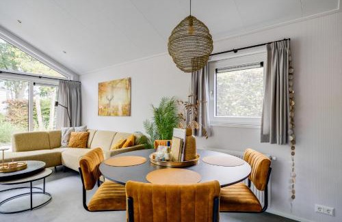Modern ingericht chalet op groen park op de Veluwe is located in Epe.