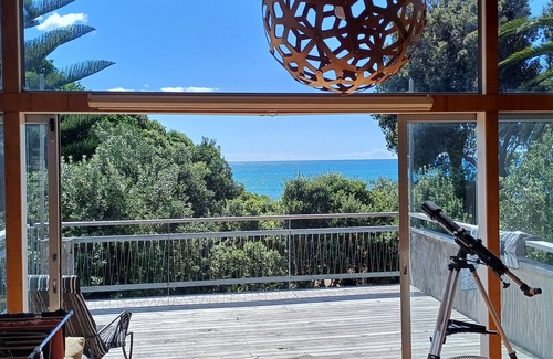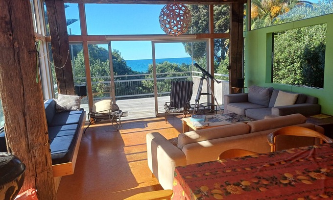 The house has 2 decks with good views of the surrounding hills and the sea. There are hammocks are provided for a peaceful read or snooze. The easy care living/kitchen area is well suited to laid back holidays at the beach. All designed for relaxed, non precious, no pressure holiday time. The is a free standing wood burner for winter nights, plenty of board games, some books and cd's and a sound system that takes most inputs. The kitchen is well equipped with a small Breville expresso coffee machine. There are 2 barbeques, charcoal and gas available for use (roll out out onto the deck to use).