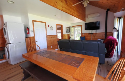 Year-round modern lakefront house with all the necessary facilities, including A/C, heat, washer/dryer, dishwasher, wi-fi, cable flat screen tv microwave, coffee maker and a gas grill. There are two beaches on the property, we have 600 feet of frontage on the lake with spectacular views. Great for Fall foliage! Great for Skimobilers! We have our own boat launch and docking for your boat, as well as rentals of rowboat, paddle boat, canoe, etc. Other amenities such as horseshoes, bocce and a campfire area are located on the property. Lake Waukewan is a thousand acre lake and is one of the cleanest most beautiful lakes in all of NH. It is the town drinking water for Meredith.Year-round actives with plenty of family attractions in the summer, beautiful fall foliage and winter skiing nearby. Great for families or a getaway for adults.