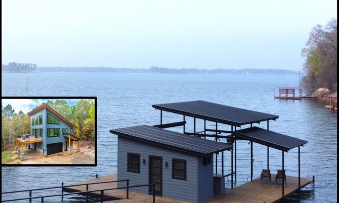 Brand new construction, modern home with luxury appointments throughout + large modern boathouse with spacious sun decks, kitchen island and covered areas. All nestled amongst tall pine and oak trees with private lake and forest views in the house through large picture windows from virtually every room.