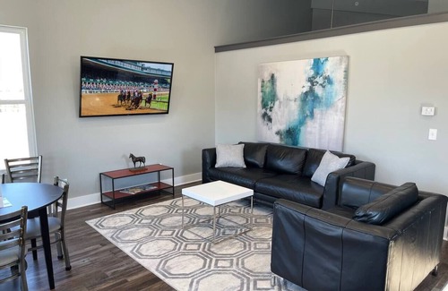 Brand new construction-NOW BOOKING! BNB Louisville welcomes you to The Triple Crown! The Triple Crown is an award winning modern loft designed specifically for Airbnb guests and entertaining large groups. This place is INSANE and you'll be the envy of all! Enjoy 4 spacious bedrooms, open entertainment floor living room with vaulted loft and gourmet kitchen stepping onto the 3rd floor sky deck with view into Churchill Downs MILLIONAIRE'S ROW! Perfect for Derby just a block away, minutes from airport, expo, UL and downtown. Private parking.