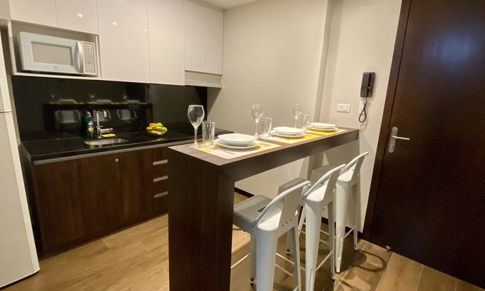 A living room, a sofa bed, air conditioning, and concierge services are featured at this 1-bedroom, 1-bathroom rental. Bathroom amenities include a hair dryer, a bidet, and towels. The kitchen is equipped with a stovetop and a refrigerator, as well as an electric kettle, a microwave, and cookware. And you can even travel light because you'll have access to laundry facilities.
