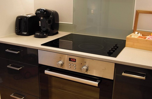 The apartment features an open-plan living and dining area, ideal for relaxing or entertaining. The modern, fully equipped kitchen includes high-end appliances, allowing you to cook and dine in style. The spacious bedroom is designed for restful nights, with a luxurious bed and plenty of storage. The contemporary bathroom is fitted with a sleek shower and quality fixtures for ultimate comfort.
