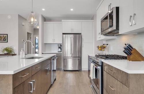 Fully-Equipped Chef's Kitchen with Premium KitchenAid Elite Appliances and Henkel Cookware.