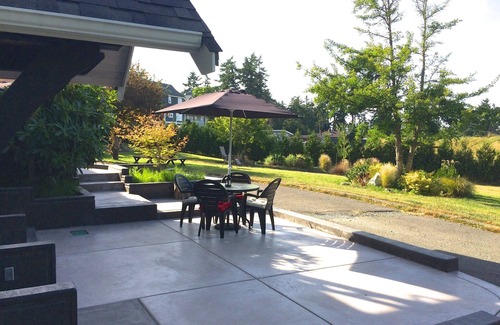 The yard is shared with the upstairs suite and the laundry room is shared as well (only available for stays of 5 days or longer). Covered patio with fire pit is also available for your use, but is shared with the upstairs guests. Please note: This property is located next to the small Pat Bay Highway, so you may hear moderate road noise in the yard during peak traffic times of day. As this is a basement suite you will also hear some noise from the upstairs guests if it is rented during your stay.