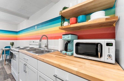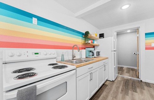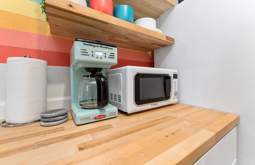 The ModPod guest house has been completely renovated & thoughtfully designed to create the ultimate Lubbock Vrbo experience! The use of bright colors, retro-inspired patterns, & tropical greenery breathes life into the space creating a fun, chic, & relaxed atmosphere. Find yourself at home with the amenities provided such as quality coffee, WIFI, & TV with Roku (Netflix, Amazon Prime). Perfect little getaway for one or two to comfortably enjoy!