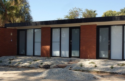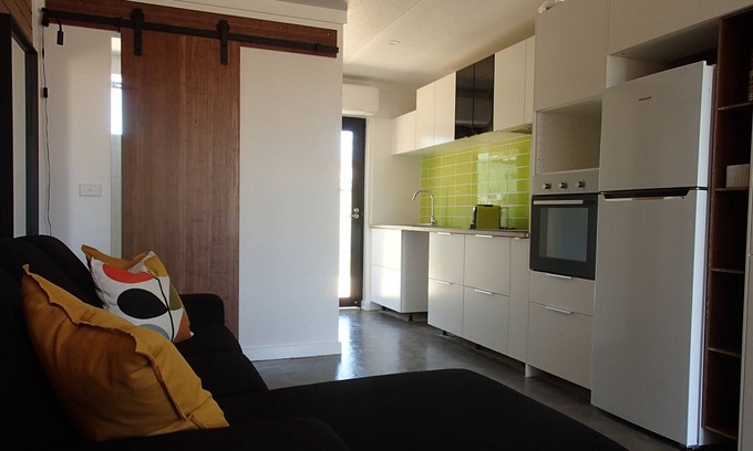 Think of your Australian roadside motel with a super modern twist! Completely re-built with full kitchens, updated bathrooms, heaps of storage and your own outdoor dining space. We have gone the green path with compostable coffee pods, all natural fibres for the linen; refillable shampoo, conditioner, body wash; buckwheat husk-filled pillows (traditional Japanese style) or down filled pillows; down filled quilts and all cotton elsewhere. LED lighting, overhead ceiling fans, and super efficient air-conditioning - all powered by solar. Bring your electric car and use the exterior power outlet to charge overnight. Plenty of onsite parking available if you have a boat or jetski in tow.
