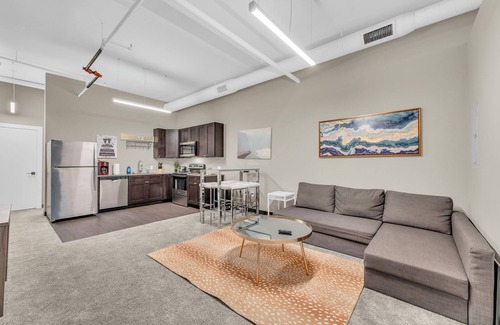 Welcome to our cozy 1-bedroom apartment near the airport! This open-concept space features a comfortable queen-sized bed and seamlessly connects the living, dining, and kitchen areas, perfect for relaxation and entertaining. Enjoy the convenience of a modern bathroom complete with a washer and dryer. You'll benefit from free parking, making your stay hassle-free. Ideal for travelers or anyone needing a convenient retreat. Book your stay today and experience comfort and convenience at its best!
